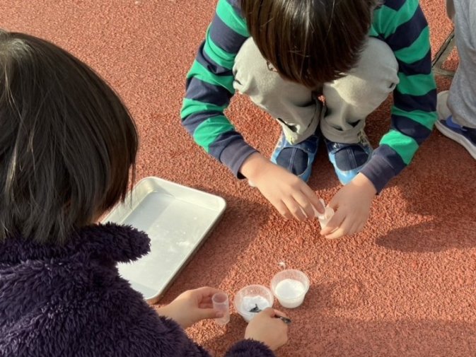児童が班ごとに「やってみたい実験」を企画し、自分たちで手順や方法をまとめます。クラブのみんなで実験を楽しみ、最後に「なぜそうなったのか」という理由を企画した班が発表します。児童の興味関心をもとに楽しく活動しています。
