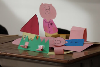 外国語で習ったことや、知っている単語を活用して会話や歌を楽しんでいます。12月には英語で人形劇を行いました。