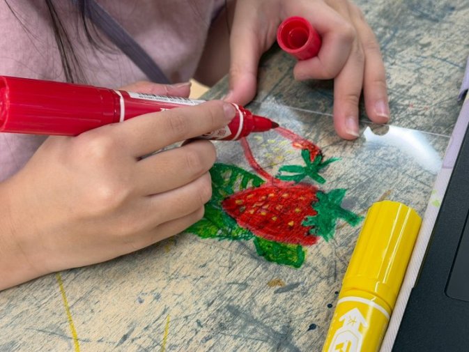 自分が書きたいイラストや絵について、色鉛筆を使って表したり、鉛筆を使って表現したりしています。毎時間、新しいイラストに挑戦している児童もいれば、数時間かけて一つのイラストを仕上げる児童もいます。