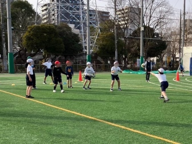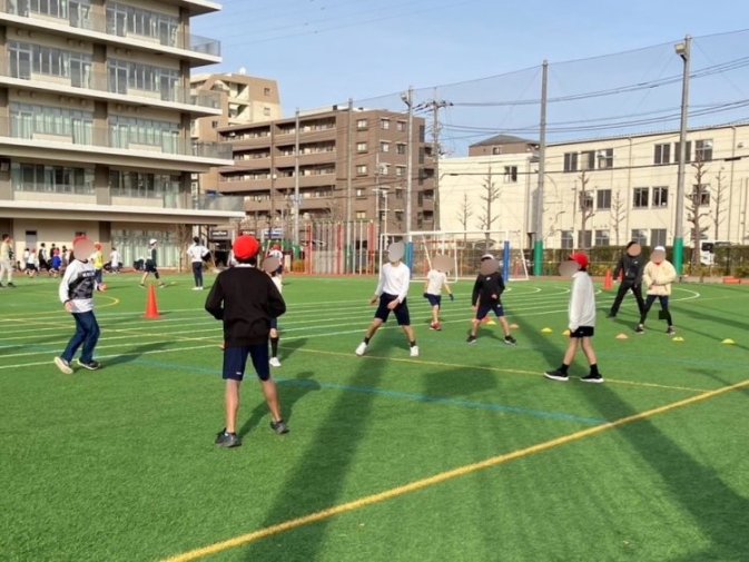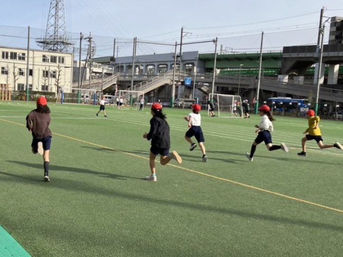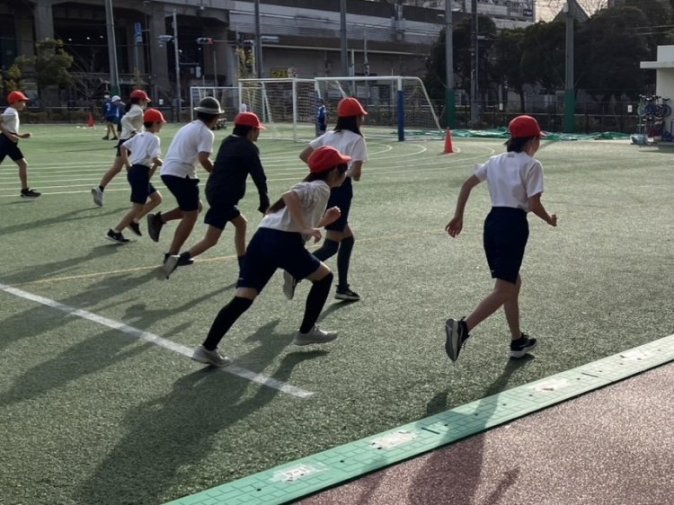 ウォーミングアップとして、鬼ごっこやしっぽ取りをしています。主としては100m走やリレー、ハードルなど陸上に関わる運動をしています。