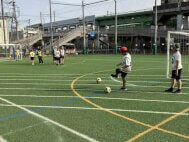 クラブ長・副クラブ長を中心に、活動の前半はパスやシュートなどの練習を行い、後半は4チームでゲームを楽しんでいます。