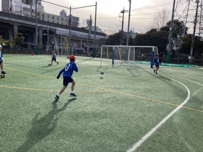 4~6年生混合のチームを作り、試合を中心に活動しています。全員が楽しめるようにルールを工夫して試合をしています。
