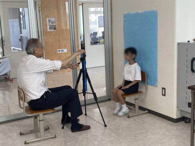 教室では筆記テストを行いました。DVDで見た内容の確認テストとなっており、〇✖で回答形式の問題が10問出題されていました。また足立区役所交通対策課の方による自転車免許証用の証明写真もあり、運転免許証の撮影場のような雰囲気の中、順番に撮影を行っていました。