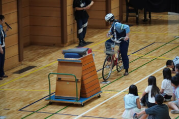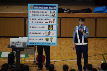はじめに警察官の方より『自転車安全利用五則』をご説明いただき、その後、交通安全のDVDを鑑賞しました。