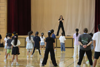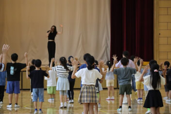 イベントは、ダンスで一番大切なことについてのお話から始まりました。 渡辺先生は「楽しく体を動かすことが一番大切!」と教えてくださり、子どもたちは目を輝かせながら耳を傾けていました。