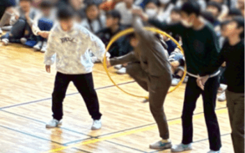 5年生からはフラフープ送りゲーム対決を挑まれ、結果は5年生が勝利しました。