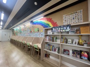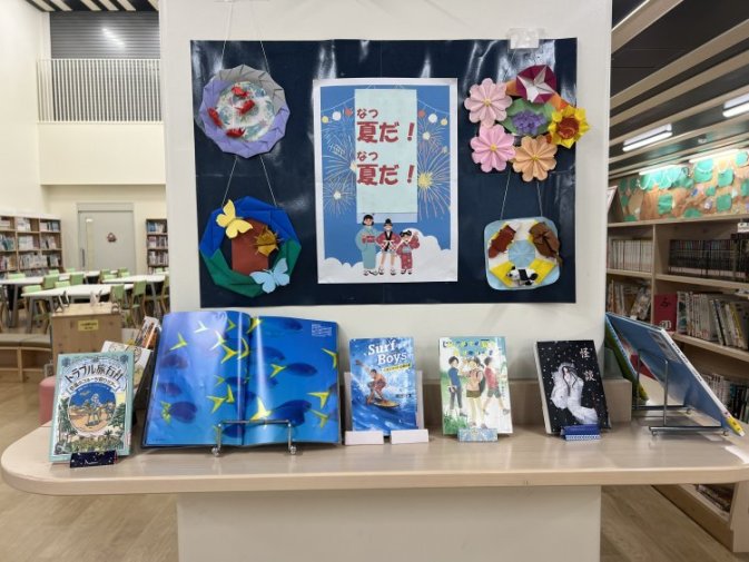 図書室では、PTAの図書ボランティアの方々が作ってくださった装飾が涼しげに迎えてくれました。今年度は本の貸し借りのみの開放でしたが、たくさんの本と触れ合えたのではないでしょうか。特設コーナーとして、「調べる学習」のやり方が分かる棚もありました!