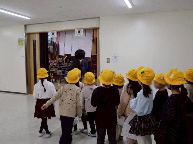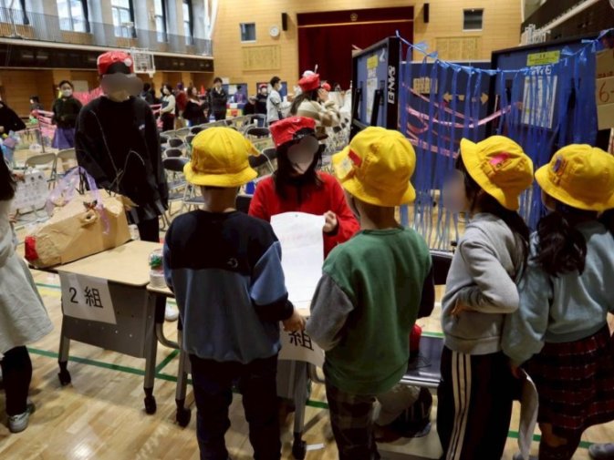 1年生は初めてのあやせまつりなので、上級生のお店に遊びに行きました。1年生だと分かりやすいように、黄色い校帽を被っていました。どのお店でも、上級生は1年生に丁寧に説明しており、みんなしっかり聞いて楽しんでいる様子が見られました。