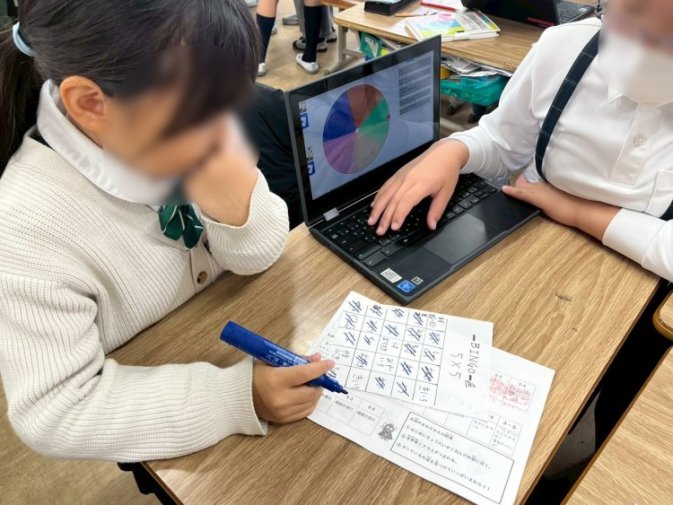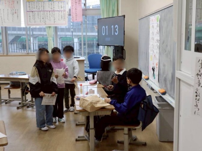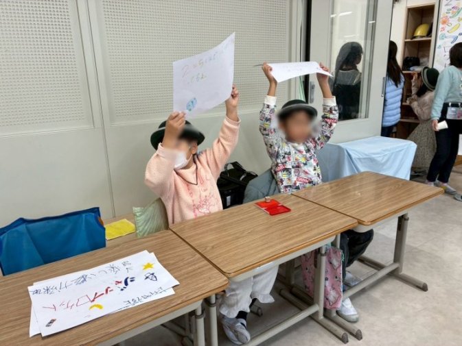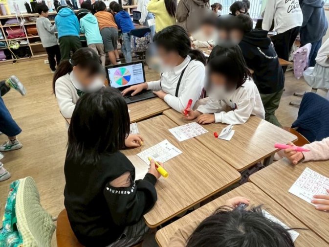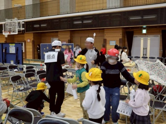 『きずな 学年を超えて』のスローガンのもと、低学年には優しく説明する姿、また高学年には難易度を上げて楽しんでもらう姿もあり、相手の立場になって考え、優しくて楽しい接客ができているなぁ、と感じました。