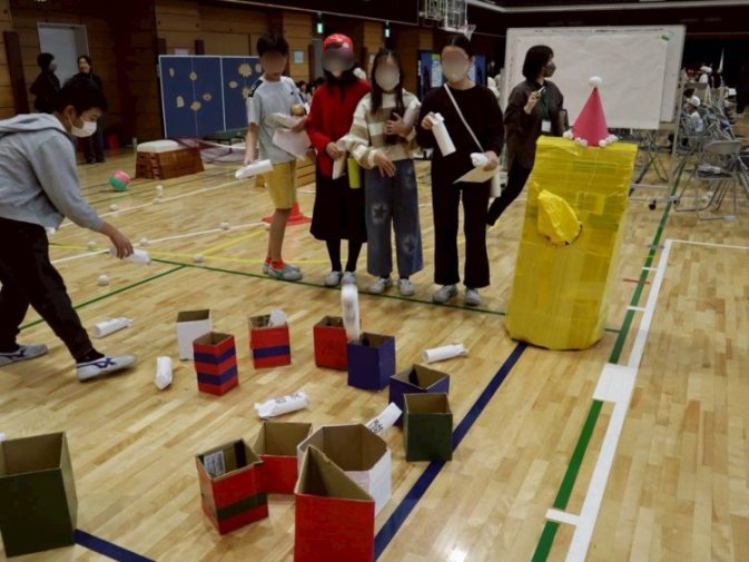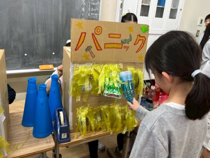 割り箸銃の射的やストラックアウト、輪投げなどの手作り感あふれるスポーツ系に加え、金魚釣りの数だけ謎を解くドキドキの謎解きお化け屋敷も登場。クイズを集めて挑戦するダンジョン、段差が難しいボーリングともぐらたたき、ワニワニパニックなど、各クラスの発想力と協力が感じられる内容でした。