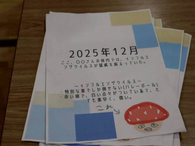 6年生のお店は、全クラス体育館です。今年度は学年で、「はたらく細胞」とテーマが決まっていました。どのクラスも、赤血球や白血球の白や赤の帽子を被っていたり、ウイルスを倒す目的になっていたりと、統一感がありながらも各クラスの工夫が見られました。体育館という利点を活かし、マットや跳び箱や平均台なども活用して、準備も大がかりなものになっており、下級生にも人気で大盛況でした。