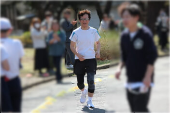 途中、酸素吸入をしたり、ストレッチをしたりする姿もありました。高学年の時には、足を引きずりながらも前進し続けくれました。常に最終ランナーに並走していた校長先生でしたが、5年生の時には「先に行っても良いですか?」と尋ねられたそうで、児童を送り出して1人で最後尾を走り続けたというエピソードもあったそうです。