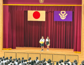 校長先生のお話の後は、4年生の児童2名による児童代表の言葉が続きました。