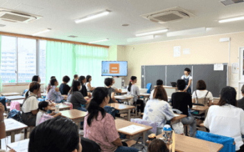 1年生保護者と乳幼児のお子さんが参加し、5年4組の教室が満席になるほどの賑わいとなりました。