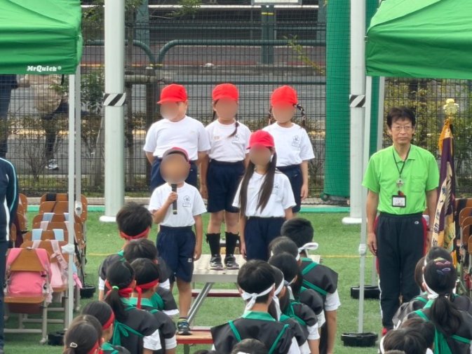 続いて、1年生5人の児童からの『開会の言葉』です。5人で元気に「運動会はじまるよ〜!」のかわいい掛け声に会場全体がほのぼのとした優しい雰囲気に包まれました。