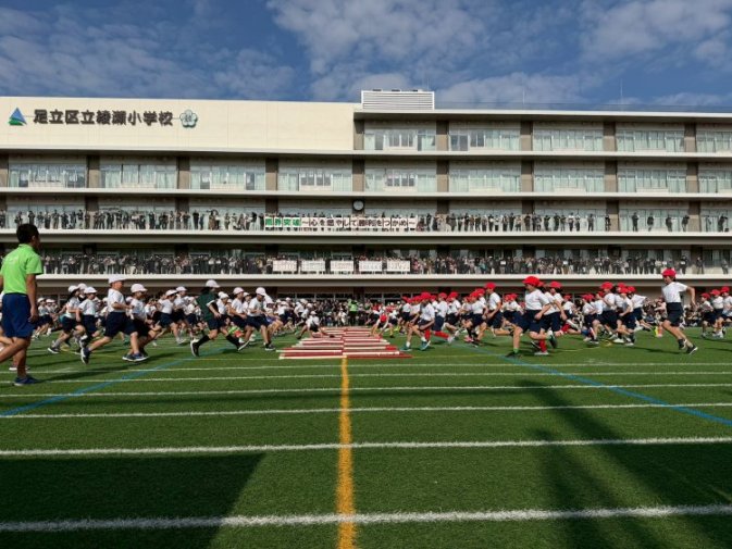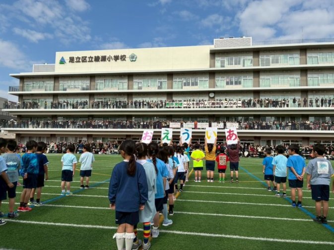 表現運動は、『あやせっ子⭐︎あいうえおダンス』。ダンスを披露する前に、学習したひらがな「あいうえお」を使って、1年生の気持ちを代表児童が紹介してくれました。ダンスが始まると、クラスカラーのシャツに身を包んだ児童たちが、広い校庭を目一杯に使ってかっこいいダンスを見せてくれました。