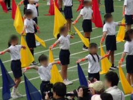 1年生最初の種目は、『かけっこ40m』でした。本部席から体育倉庫前のゴールまでの直線を一生懸命走りました。大勢の観客に見守られ、ピストルの合図を聞いて走り出す1年生の姿に、「がんばれー!」と応援にも熱が入っていました。また初めての徒競走にドキドキワクワク緊張する姿に、「かわいい…」と萌えた心の声がチラホラ漏れ聞こえておりました。
