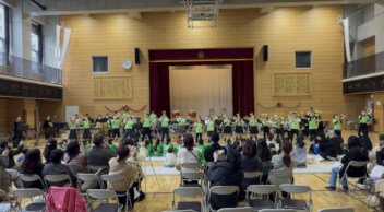 最後に、アンコール曲はお囃子クラブと金管バンド部の合同演奏で『マツケンサンバⅡ』。金管バンドの音色に長胴太鼓と締太鼓が加わり、和風テイストな『マツケンサンバⅡ』に仕上がりました。ステップを踏むお囃子クラブと一緒に踊り出したくなりましたね。
